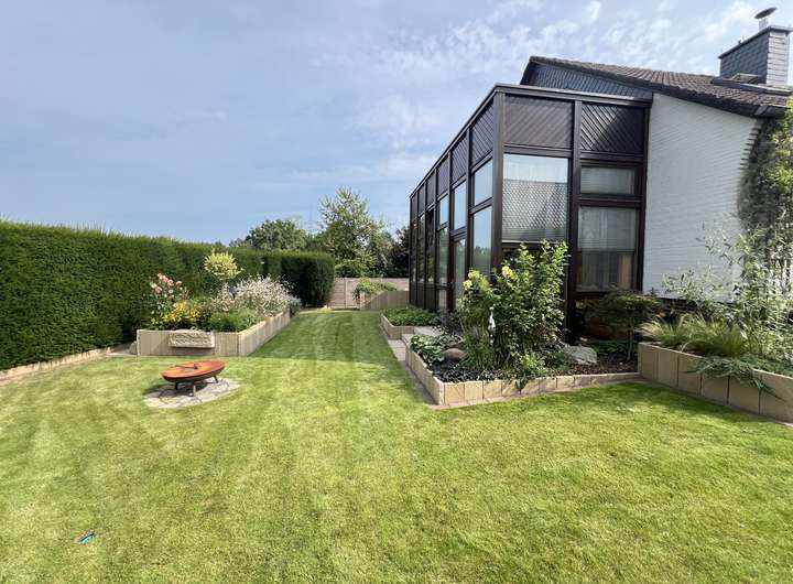 Sehr geräumiges Einfamilienhaus (Okalhaus in mehrgeschossiger Ausführung der Baureihe 360Grad Klinker-Außenmauerwerk, keine Fassaden-Eternitplatten) mit Anbau in Massivbauweise, in Bestlage / unverbaubarer Feldrandlage, komplett neues Bad und neues Gäste-WC, Kamin mit Heizkassette, Einliegerwohnung / ausgebautes Dachgeschoss, vollunterkellert in massiver Ausführung/Mauerwerksbau (fünf große Kellerräume) ideal für Hobby, Fitness, Vorräte etc., durchgängig Bodenfliesen, Stahlbetondecke, große Doppelgarage mit geräumiger Abstellfläche und elektrischem Sektionaltor, großer heller Wintergarten in Holzbauweise als Split-Level mit einzigartigem Blick in das Landschaftsschutzgebiet, unverbaubare Dorfrandlage, aufwändig neu gestalteter schöner, pflegeleichter Garten mit kleinem Gartenteich, Gartenpumpe, Boden-Bewässerungssteckdosen für Gartenschläuche, großzügige Terrasse mit Sonnenmarkise, Einliegerwohnung mit großer teilüberdachter Dachterrasse und zusätzlichem großen Balkon mit unvergleichlichem Blick ins Landschaftschutzgebiet. Das Haus beeindruckt durch seine gelungene Raumaufteilung sowie eine Vielzahl besonderer Ausstattungsmerkmale: •Neues, modern ausgestattetes Badezimmer und ein ebenso neues Gäste-WC •Gemütlicher Kamin im Wohnbereich für behagliche Stunden •Einliegerwohnung im ausgebauten Dachgeschoss mit separatem Zugang – ideal zur Vermietung oder für Familienmitglieder •Große teilüberdachte Dachterrasse sowie ein zusätzlicher Balkon mit traumhaftem Weitblick •Heller Wintergarten in Split-Level-Bauweise, ausgeführt in hochwertiger Holzbauweise – ein architektonisches Highlight mit einzigartigem Panoramablick •Anbau in Massivbauweise, ideal als zusätzlicher Wohn- oder Arbeitsbereich Außenanlagen & Nebengebäude •Vollunterkellert in massiver Bauweise mit Stahlbetondecke – viel Stauraum und vielfältige Nutzungsmöglichkeiten •Große Doppelgarage mit elektrischem Sektionaltor und zusätzlicher Abstellfläche •Liebevoll neu gestalteter pflegeleichter Garten (Ende 2023) mit kleinem Teich, Gartenpumpe sowie unterirdischen Schlauch-Bewässerungsanschlüssen •Großzügige Terrasse mit elektrischer Sonnenmarkise – perfekt für sonnige Nachmittage und gesellige Abende Besonderheiten •Sehr gute Bauausführung (Klinkerfassade, Massivkeller) •Split-Level-Wintergarten mit unverbaubarem Fernblick •Zwei großzügige Außenbereiche (Terrasse & Dachterrasse & Balkon) Fazit: Ein besonderes Einfamilienhaus mit durchdachtem Raumkonzept, guter Ausstattung und einem unvergleichlichen Ausblick. Ideal für Familien mit Platzbedarf, Mehrgenerationenwohnen oder auch die Kombination von Wohnen und Arbeiten. Die seltene Dorfrandlage in Verbindung mit dem großzügigen Grundstück und dem Blick ins Grüne macht dieses Haus zu einem echten Wohnjuwel in Schloß Ricklingen.