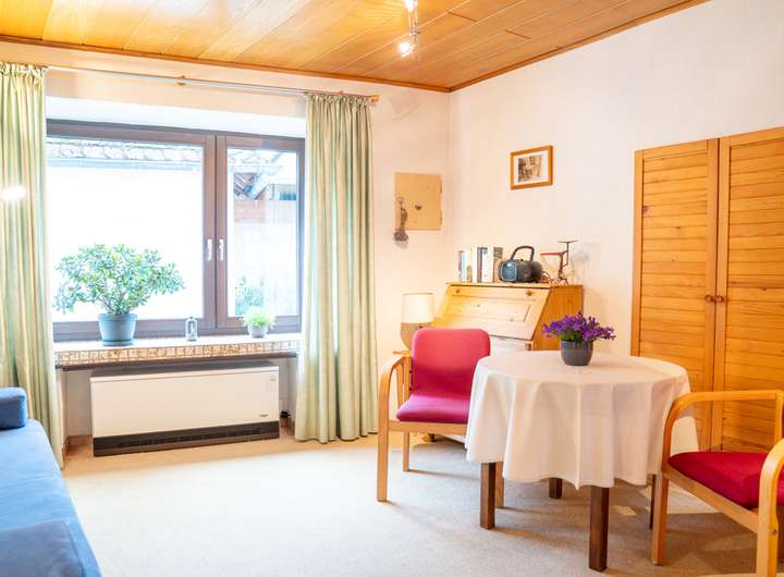 Die Wohneinheit im Erdgeschoss verfügt über einen großzügigen Eingangsbereich, der in ein helles Wohnzimmer übergeht. Eine Wohnküche bildet das Herzstück der Wohnung und lädt zum gemeinsamen Kochen und Verweilen ein. Das Schlafzimmer, ein kleines Badezimmer sowie ein praktischer Abstellraum ergänzen das Raumangebot.