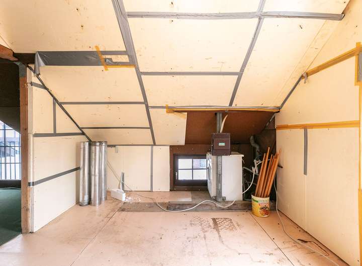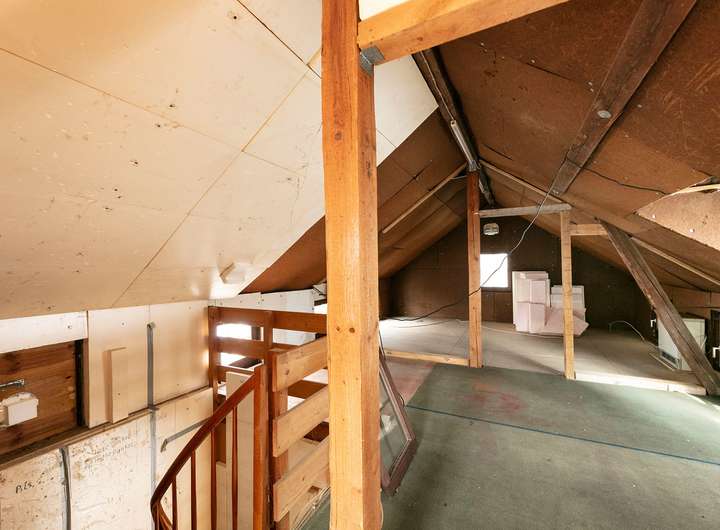 Dachgeschoss: Teppich und Gipskartonplatten