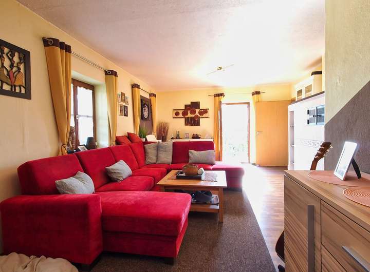 Das Zweifamilienhaus wurde 1986 in massiver hochwertiger Ziegelbauweise (36,5 Wandstärke) errichtet. Es wurde fortlaufend renoviert und befindet sich technisch und optisch in gutem Zustand. 2014 wurde das Dachgeschoss neu ausgebaut und mit zwei 6 Meter langen Gauben aufgestockt. Zudem befindet sich im Untergeschoss eine ca. 100 m² große alte Schreinerei-Werkstatt, die als Gewerbefläche gewidmet ist, jedoch auch als Wohnraum umgenutzt werden könnte. Die Werkstatt ist ebenerdig auf Terrassenhöhe und bietet direkten Zugang zur Zufahrt oder einem neu angelegten Garten.