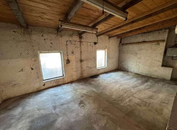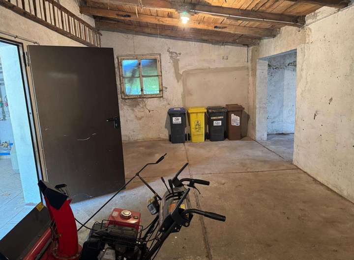 Unterhalb des Anbaus befindet sich eine weitere Garage mit elektrischem Rolltor und integrierter Montagegrube. Daran angeschlossen sind zwei große Räume, die sich ideal als Werkstatt oder Lagerfläche eignen.
