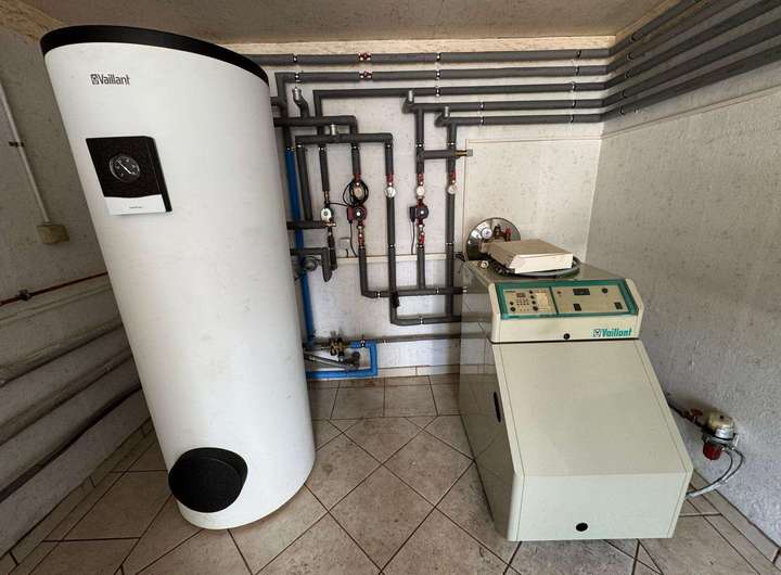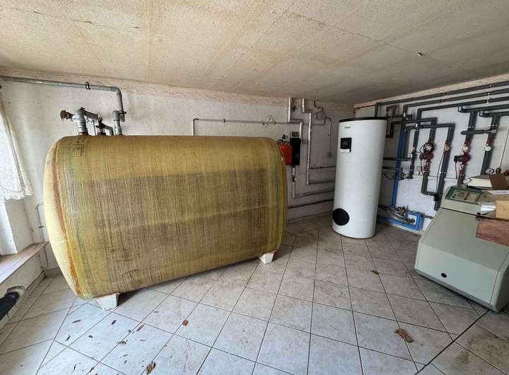 Zum Anwesen gehört ein separates Nebengebäude mit kleiner Garage. Hier befindet sich auch der Heizungsraum mit einer Ölzentralheizung und Warmwasseraufbereitung der Firma Vaillant. Auf dem Dach dieses Gebäudes ist eine thermische Solaranlage installiert, die zur Warmwasserbereitung beiträgt.