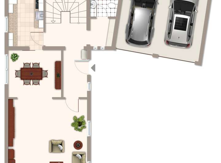 Für Fahrzeuge ist mit einer Doppelgarage ausreichend Platz für zwei Autos vorhanden, was den Komfort des Hauses weiter steigert.