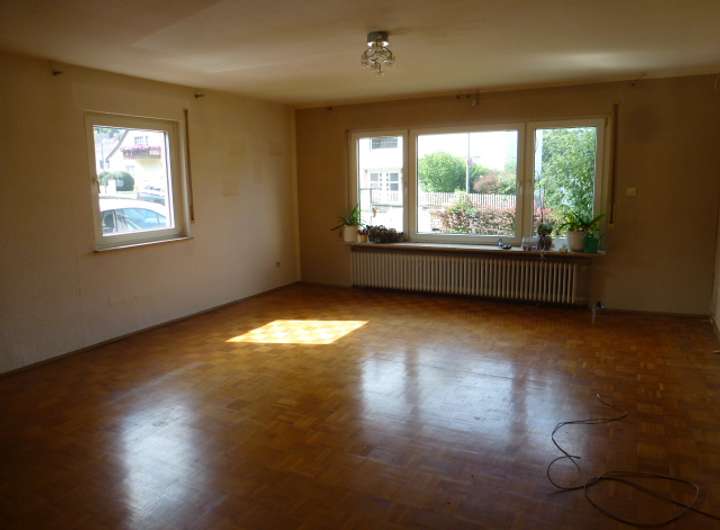 Im Wohnzimmer sorgt der Parkettboden für eine angenehme Atmosphäre.
