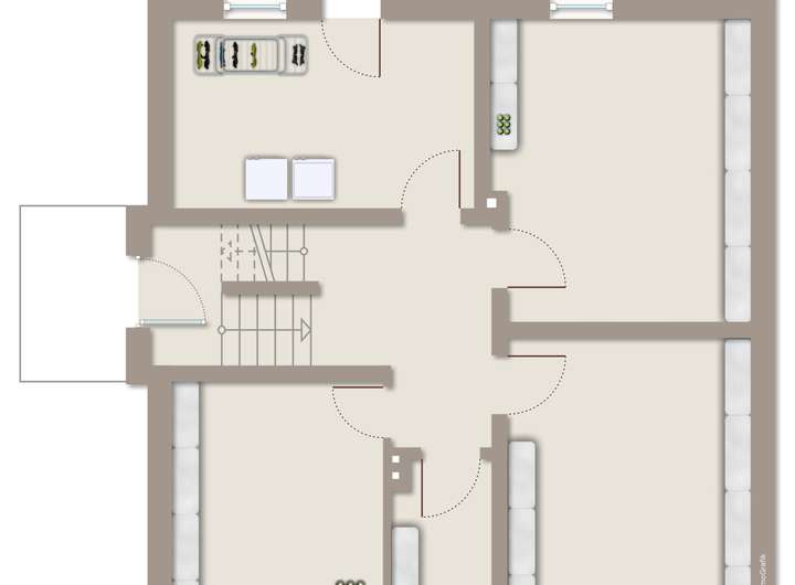 Das Haus hat überwiegend Kunststoff-Fenster mit Doppelverglasung, die für eine entsprechende Wärme- und Schallisolierung sorgen. Die Außenrollläden gewährleisten zusätzlich einen optimalen Sonnenschutz und eine angenehme Lichtregulierung.