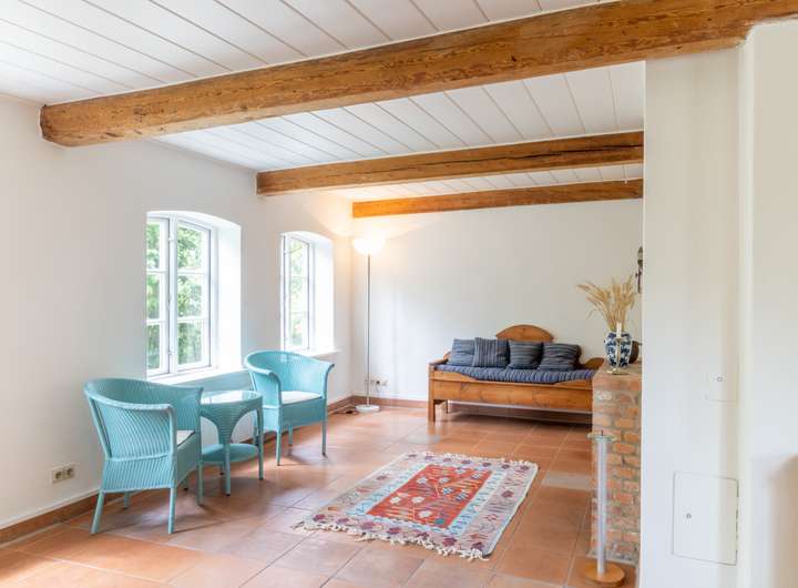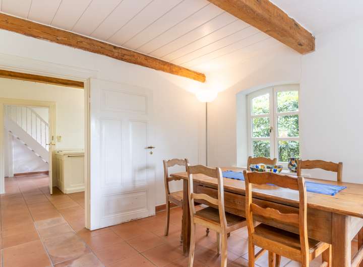 Dieses denkmalgeschützte Haus liegt durch Bäume geschützt in erhöhter Lage als Einzelwarft in ländlicher Idylle und bietet Ihnen eine weite Sicht auf das Land. Der Nationalpark Wattenmeer ist von hier in 2,2 km Luftlinie entfernt. Über die Auffahrt durch das sehr großzügige Grundstück mit 7169 m², erreichen Sie das Haus und betreten es durch die Klönschnacktür auf der Ostseite. Hier befindet sich auch die Terrasse auf der Sie den Morgen mit einem Kaffee in der Hand begrüßen können. Im Haus öffnet sich der großzügige Wohn- und Essbereich mit einem offenen Kamin. An den etwas kälteren Tagen erzeugt der Kamin eine behagliche Wärme. Die dänischen Sprossenfenster, die Terrakottaböden und die offene Balkenlage sorgen für das klassische Landhaus-Feeling. Die gemütliche Küche befindet sich in der Mitte des Hauses. Von hier aus gelangen Sie weiter in den Flur und in ein großzügiges Schlaf- bzw. Arbeitszimmer mit Badezimmer en Suite und barrierefreier Dusche. Über die Holztreppe im Flur gelangen Sie in das Obergeschoss des Hauses, welches über zwei weitere Zimmer und ein Badezimmer mit Sauna verfügt. Der Garten rund um die Warft ist gepflegt und ein alter Baumbestand sorgt im Sommer für schattige Plätzchen im Freien. Die Feldscheune, die einst als Schafstall diente und am Fuße der Warft steht, bietet ausreichend Stauraum und Lagermöglichkeiten. Als Zeitzeuge vergangener Jahrhunderte wird das Baujahr auf ca. 1880 geschätzt. Durch umfangreiche und stets fortlaufende Sanierungsarbeiten in den Jahren 1987 und 2019 befindet sich dieses Haus in einem sehr guten Zustand. 2024 wurde das gesamte Mauerwerk auf der Wetterseite durch Fachbetriebe komplett saniert und durch eine Imprägnierung langfristig vor schlechtem Wetter geschützt. Der Innenbereich wurde ebenfalls in großen Teilen durch eine Fachfirma mit einem frischen Anstrich versehen. Vom Schieferdach über die Mauern und Fenster und die Elektrik sind zahlreiche Arbeiten bereits ausgeführt worden. Gerne geben wir Ihnen einen detaillierten Einblick weiterer bereits ausgeführter Arbeiten bei einem persönlichen Gespräch. Ihren Traum vom eigenen Haus an der Nordsee mit der gesunden frischen Luft, können sie hier wahr machen.