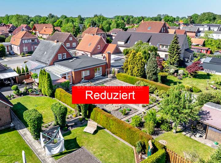 Dieses charmante Einfamilienhaus aus dem Jahr 1965 (Anbau 1981) befindet sich in zentraler Lage von Weener auf einem großzügigen Grundstück mit ca. 940 m² Fläche. Es bietet reichlich Platz und punktet mit einer durchdachten Raumaufteilung sowie einer gepflegten Außenanlage. Im ebenerdigen Bereich befinden sich zwei Wohnbereiche, Küche, Wintergarten, Duschbad mit Sauna, Schlafzimmer mit Duschbad sowie ein Abstellraum. Im Obergeschoss stehen Ihnen ein großes Schlafzimmer, 2 x kl. Schlafzimmer und ein Abstellraum zur Verfügung. Beheizt wird das Objekt durch eine Gas-Z.-Heizung incl. 120l Warmwasserspeicher. Die Kunststofffenster sind Iso-Vergl.. Die Hohlschicht vom Altbau wurde im Jahr 2011 zusätzlich mit einem hochwertigen Rockwool-Granulat isoliert. Der Teilkeller sowie Stallungen im rückwärtigen Bereich des Grundstücks bieten weitere Abstellmöglichkeiten. Für die Unterbringung von Ihrem PKW steht Ihnen eine Garage sowie ein Carport mit Glasdach zur Verfügung. Eine Immobilie für Menschen, die Wert auf großzügigen Wohnraum, ein weitläufig, gepflegtes Grundstück und eine zentrale Lage legen.