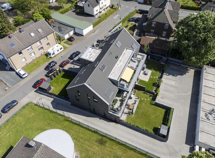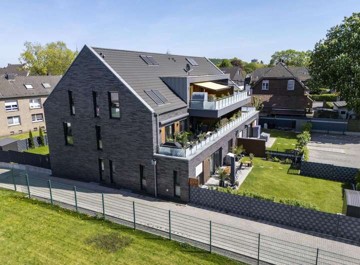 Diese helle Eigentumswohnung im ersten Obergeschoss eines stilvollen, neuwertigen Wohngebäudes aus dem Jahr 2020 überzeugt mit moderner Architektur, hochwertiger Ausstattung und einer großzügigen Dachterrasse mit über 20 m² Fläche und Südausrichtung – ideal für sonnige Stunden im Freien.