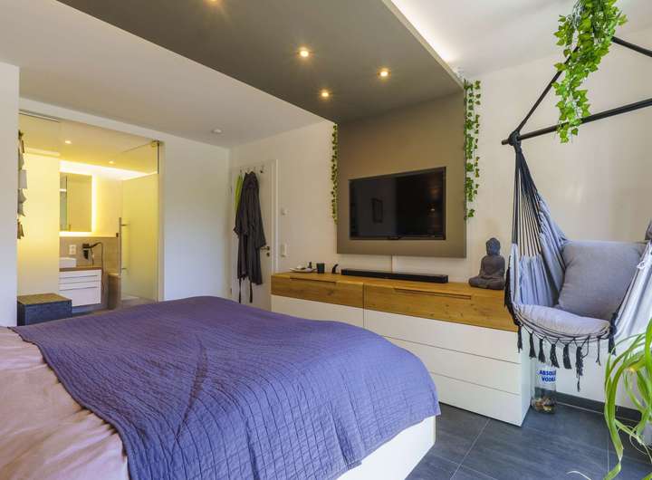 – Schlafzimmer mit Bad en suite (Wanne & bodengleiche Dusche)