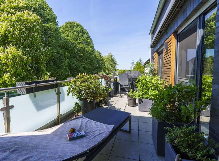 – Über 20 m² große Dachterrasse mit Südausrichtung und Gartenblick