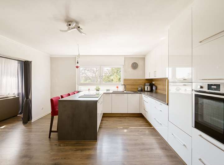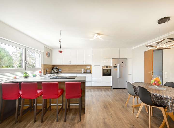Die hochwertige Einbauküche der renommierten Firma Ehrmann – mit modernen Elektrogeräten (ca. 5 Jahre alt) – ist ein weiteres Highlight. Sie ist nicht im Kaufpreis enthalten, kann aber auf Wunsch separat übernommen werden.
