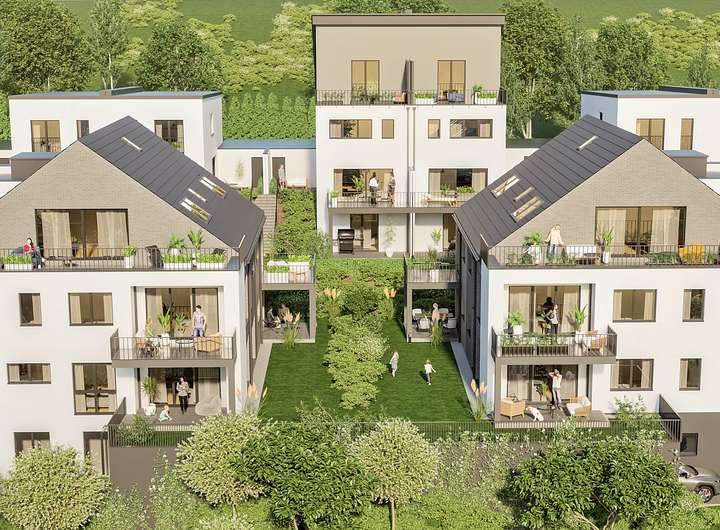 Das Gebäude wird in solider Mauerwerksbauweise errichtet und erfüllt alle Anforderungen gemäß GEG 2024. Fundamente und Bodenplatte in Beton. Die Außenwände sowie die tragenden Innenwände werden aus Kalksandstein bzw. Stahlbeton hergestellt. Die Geschossdecken bestehen aus Stahlbeton. Die Geschosstreppen sind ebenfalls aus Stahlbeton gefertigt. Sie werden mit polierten Granitstufen belegt. Auf das Außenmauerwerk wird ein Wärmedämmverbundsystem (WDVS) aufgebracht.