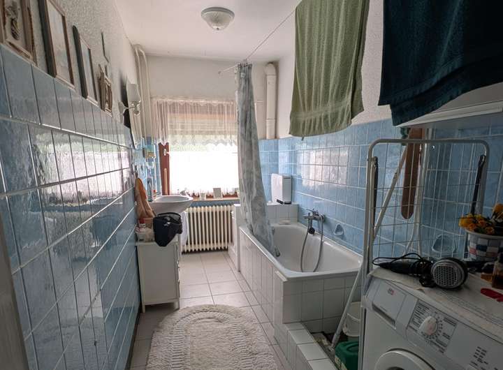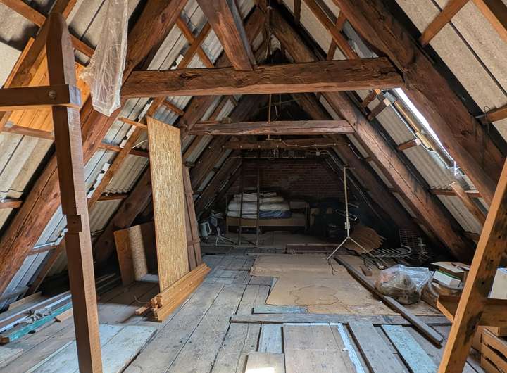 Wir empfehlen jedoch, das Haus vollumfänglich zu sanieren. Dies betrifft insbesondere die Heizungsanlage, die sanitären Anlagen, die Elektrik, Fenster und Türen sowie das Dach. Bei der letzten Dachsanierung wurden die wahrscheinlich asbesthaltigen Faserzementplatten durch ein modernes Metalldach überdeckt.