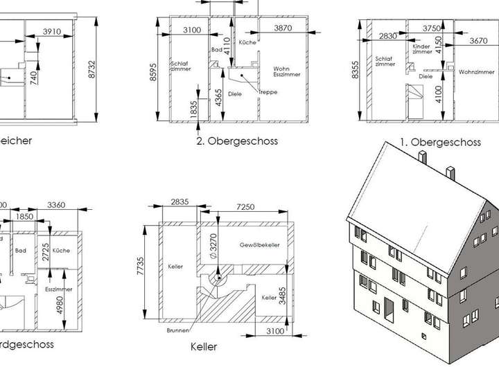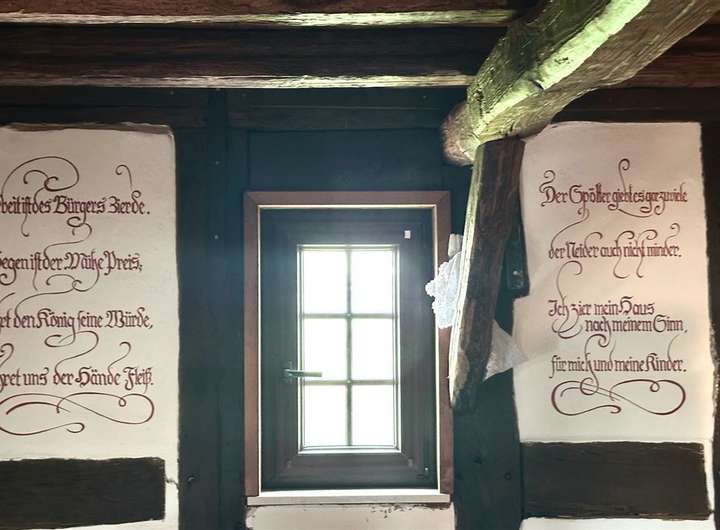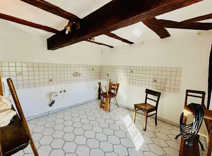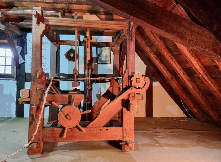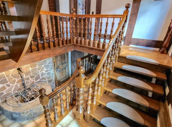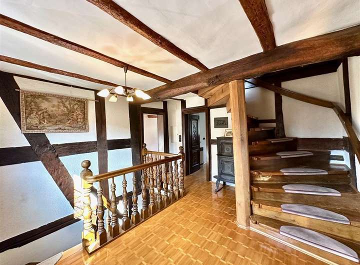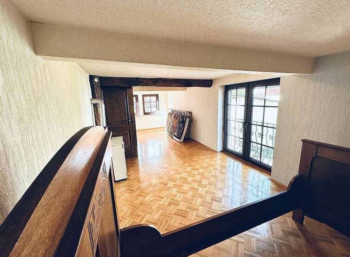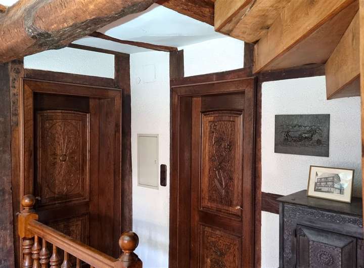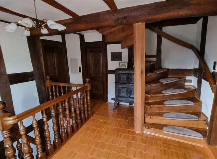 Das Haus erstreckt sich über drei Vollgeschosse sowie ein ausgebautes Dachgeschoss. Im Inneren erwarten Sie insgesamt 8 Zimmer, drei Badezimmer, zwei Küchenbereiche, ein Gewölbekeller sowie zahlreiche erhaltene historische Details – darunter ein eigener Brunnen, ein Webstuhl und antike Geräte.