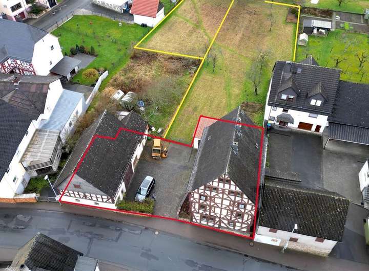 Dieses charmante Fachwerkhaus mit angrenzender Scheune befindet sich in ruhiger Dorflage von Mittenaar-Bicken. Das ca. im 18. Jahrhundert errichtete Gebäudeensemble steht unter Denkmalschutz und bietet mit etwa 227 m² Wohnfläche und einer Grundstücksgröße von insgesamt ca. 2.100 m² (inkl. Gartenflächen) viel Raum für individuelle Wohnträume oder kreative Nutzungskonzepte. Der angegebene Kaufpreis bezieht sich auf das vollständige Grundstück. Auf Wunsch des Käufers kann jedoch ein Teil von bis zu 1.640 m² als separate Gartenfläche aus dem Kauf ausgeschlossen werden – in diesem Fall wäre eine entsprechende Anpassung des Kaufpreises möglich.