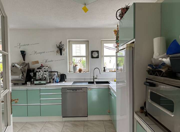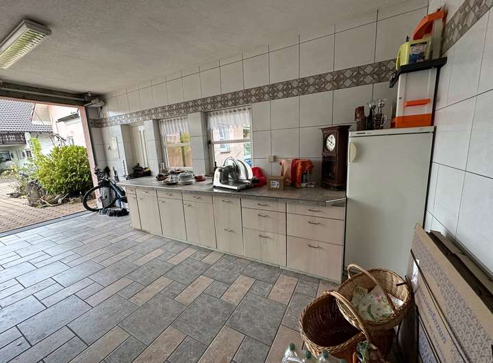 o Vollständig gefliest, inklusive Küchenzeile und Kühlschrank.