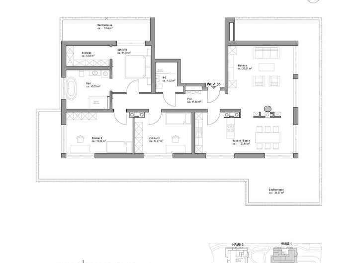 - Jedes Apartment verfügt über großzügige Außenbereiche, wie Privatgärten oder umlaufende Dachterrassen.