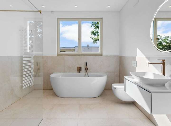- Bodentiefe Fenster: Helle, lichtdurchflutete Räume schaffen ein einzigartiges Wohngefühl.