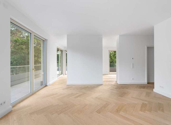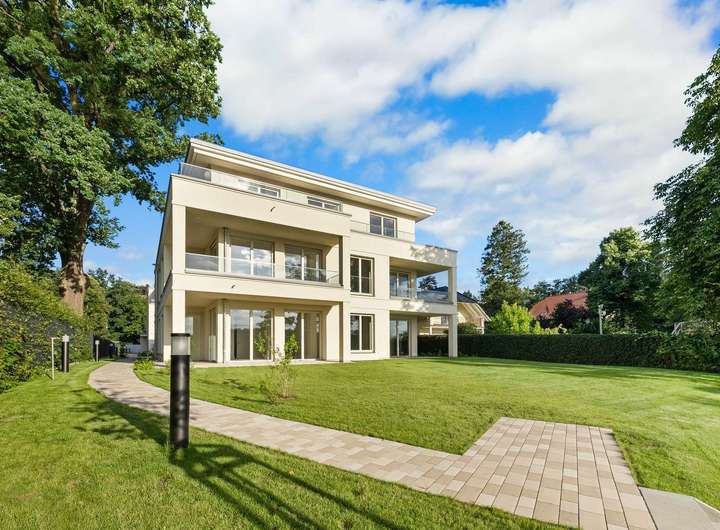 The new building project “Am Reiherhorst 5” is located directly on the shore of Lake Peetzsee on a water property of over 3,500 m² with its own jetty. Two exclusive city villas with a total of ten luxurious condominiums have been built here.