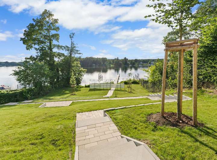 Das Neubauprojekt "Am Reiherhorst 5" befindet sich direkt am Ufer des Peetzsees auf einem über 3.500 m² großen Wassergrundstück mit eigenem Steg. Hier sind zwei exklusive Stadtvillen mit insgesamt zehn luxuriösen Eigentumswohnungen entstanden.