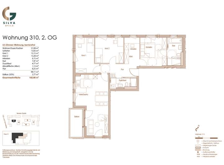 SILVA, der erste Bauabschnitt von OPUS.G, ist geprägt durch den Waldplatz, ein mit heimischen Bäumen und durch harmonische Freiflächen gekennzeichnetes Areal.