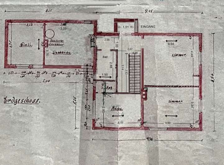 Das Haus hat ist massiv erstellt und vollunterkellert. Zusätzlich gibt es einen Anbau (Stallgebäude) mit einer Waschküche. Das Haus bedarf einer umfassenden Sanierung.