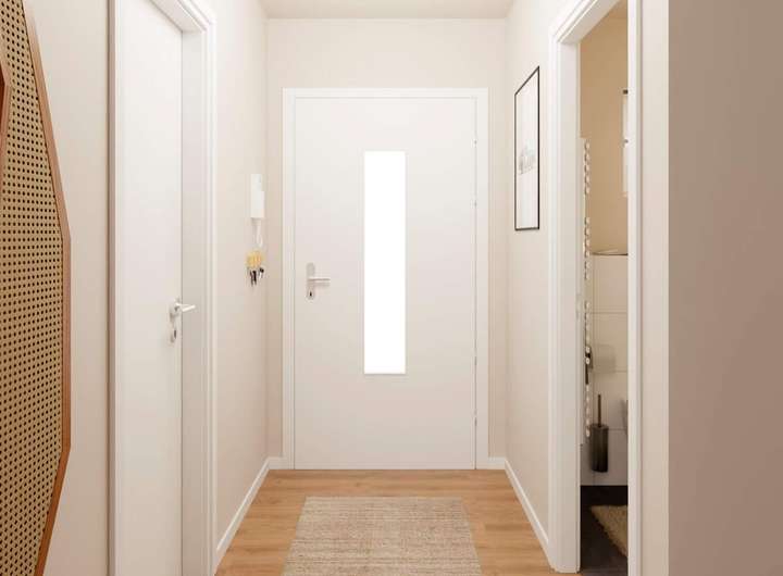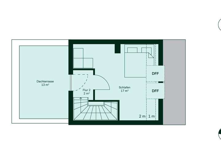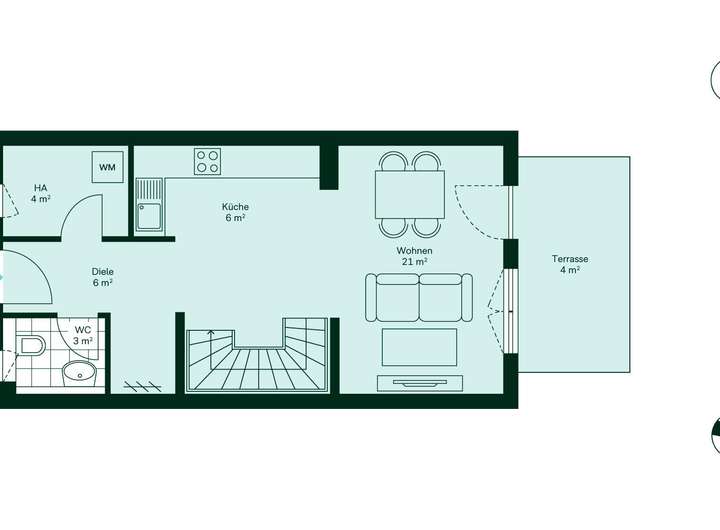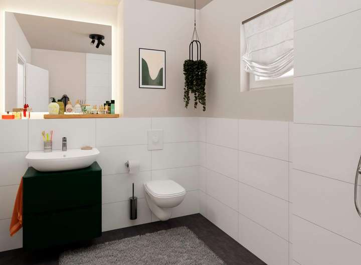 Stellen Sie sich vor, wie Sie durch den offenen Wohnbereich direkt auf Ihre Terrasse treten – bereit für entspannte Stunden im Freien. Die offene Küche schafft Raum für gemeinsame Genussmomente, während das Gäste-WC im Erdgeschoss praktisch im Alltag unterstützt. Im Obergeschoss erwarten Sie zwei großzügige Schlafzimmer und ein Badezimmer mit bodengleicher Dusche – ideal für einen bequemen Start in den Tag. Oben angekommen, wird das Schlafzimmer im Dachgeschoss zu Ihrem persönlichen Rückzugsort. Von hier aus geht es direkt auf die Dachterrasse – ein Platz, der jeden Tag besonders macht.