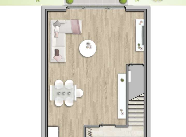 Noch mehr Energie sparen Sie in Ihrem neuen Zuhause mithilfe des Smarthome-Systems: Es übernimmt beispielsweise die Steuerung der Fußbodenheizung und hilft so dabei, den Verbrauch zu senken. Das ist bei VISTA ebenfalls wichtig: Alle Fenster sind mit Rollläden ausgestattet (außer im Gäste-WC). Die Fenster im Erdgeschoss sind abschließbar und mit einer zusätzlichen Einbruchsicherung versehen. Sicherheit auch drinnen: Die Treppe ist geschlossen und geradläufig, so dass sich Jung und Alt im Treppenhaus sicher bewegen können.