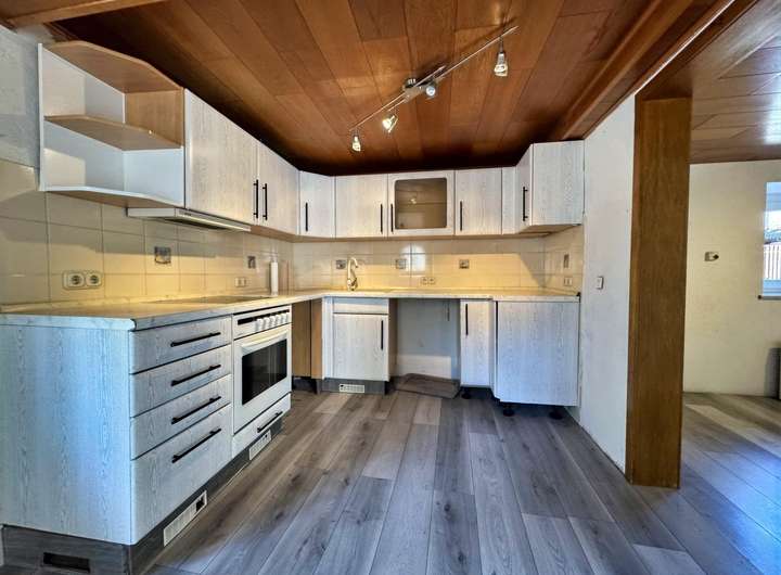 • Erdgeschoss: Die vorhandene Einbauküche (nicht modern, aber funktional) bietet genug Platz für einen kleinen Essbereich. Direkt angrenzend befindet sich das Wohnzimmer.