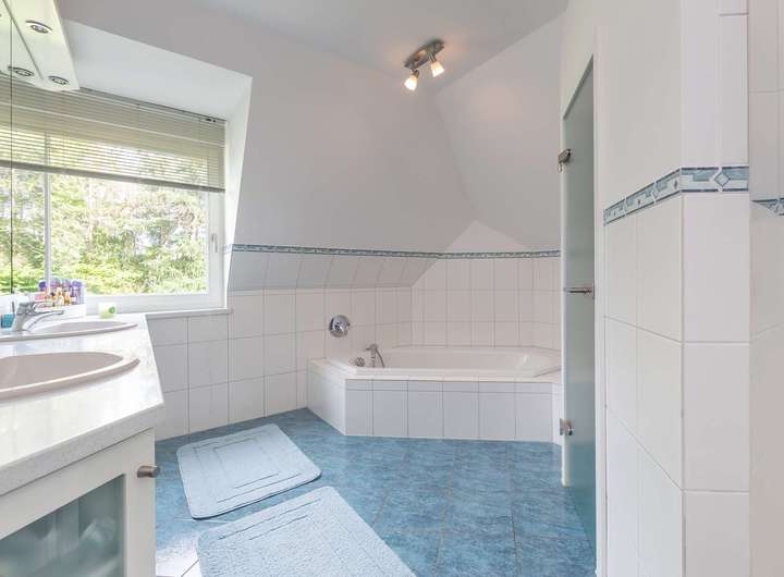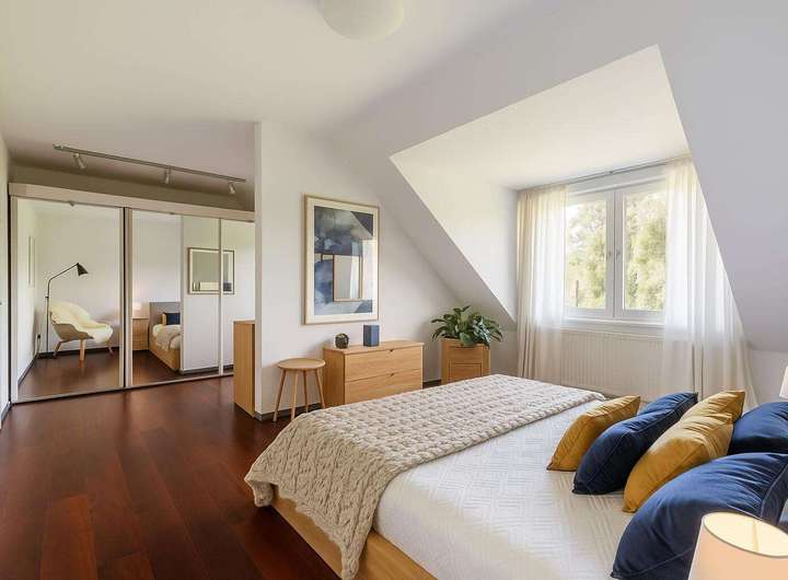 Im Obergeschoss befinden sich vier Zimmer und zwei Bäder, eines davon en suite.