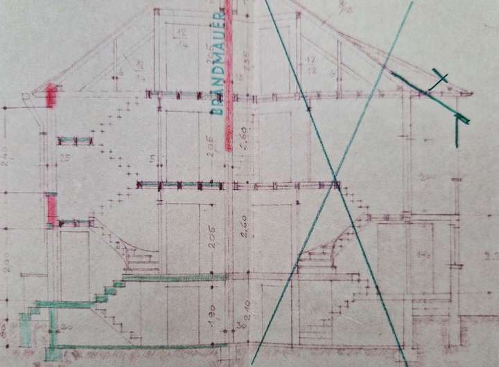 Aufgrund von Aufstockung ( Dachgeschoss ) und Nebengebäude gibt es verschiedene Baujahre.