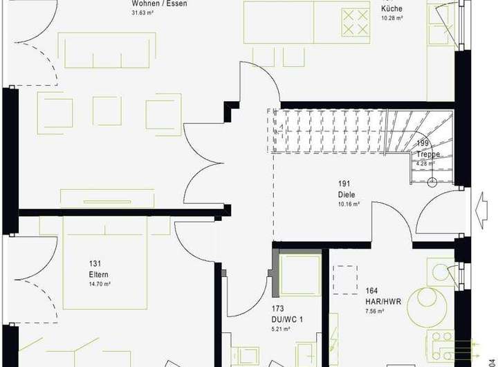 Unsere projektierten Ausbauhäuser sind von außen fertig verputzt, mit Fenstern, Eingangstür, Dacheindeckung und Dachrinnen. Die Heizungsanlage mit Fußbodenheizung, mit kompletter Elektroinstallation, sowie der Buche-Holztreppe EG/DG sind inkl. Montage enthalten.