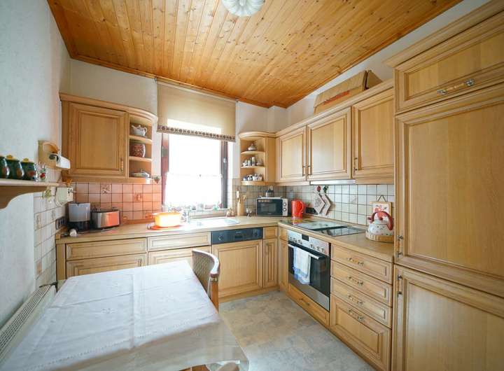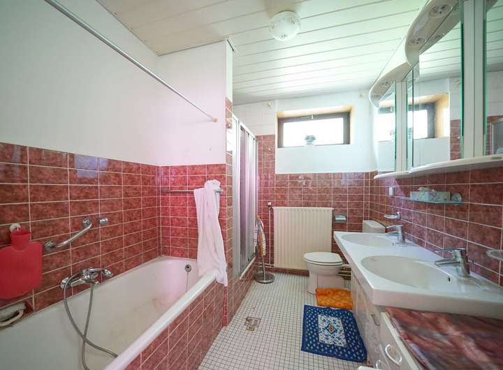 Die Ausstattung entspricht dem mittlerem Standard. Die Tageslichtbadezimmer verfügen über eine Dusche und/ oder Badewanne. Jede Etage verfügt über eine eigene Heizung, im Erdgeschoss eine Gas-Brennwerttherme aus 2023 und im Dachgeschoss eine Gasheizung aus 2014. Warmwassererzeugung erfolgt per Boiler. Zum Teil wurden hier bereits Kupferleitun-gen verbaut. Die Elektrik ist veraltet und entspricht nicht dem aktuellen Standard. Die Holzfenster sind 2-fach verglast und z.T. aus 1985. Der Zustand der Immobilie ist als sanierungsbedürftig zu bezeichnen.