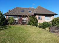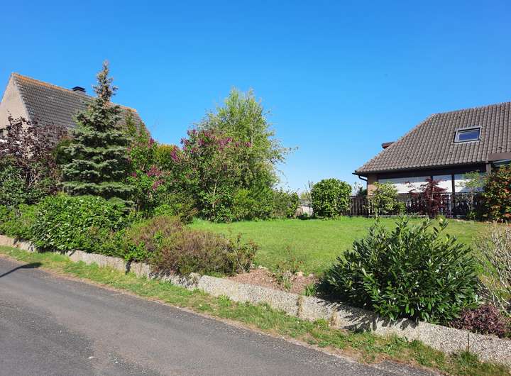 Freistehendes Einfamilienhaus mit Garten und Garage.