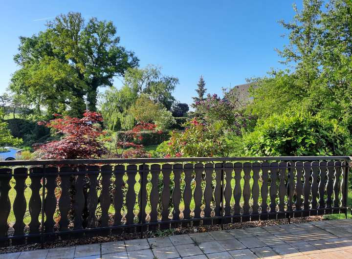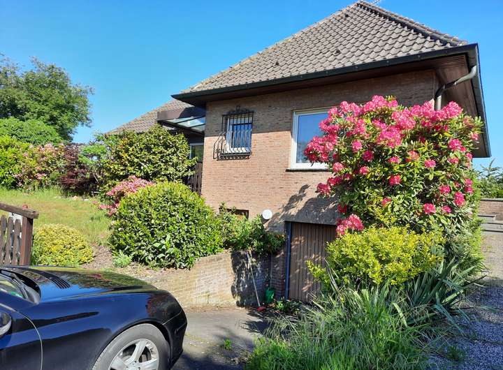 Garten: Rundum, Privatsphäre. Eine Außentreppe führt zum Keller.