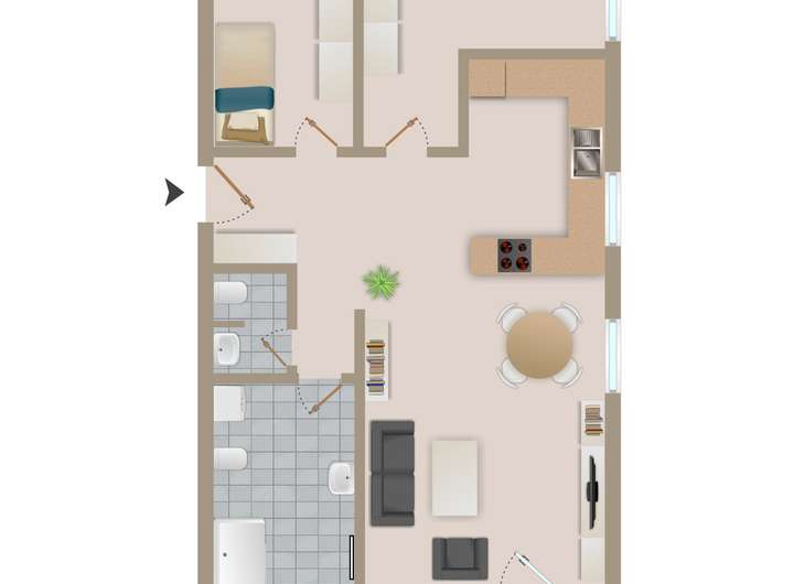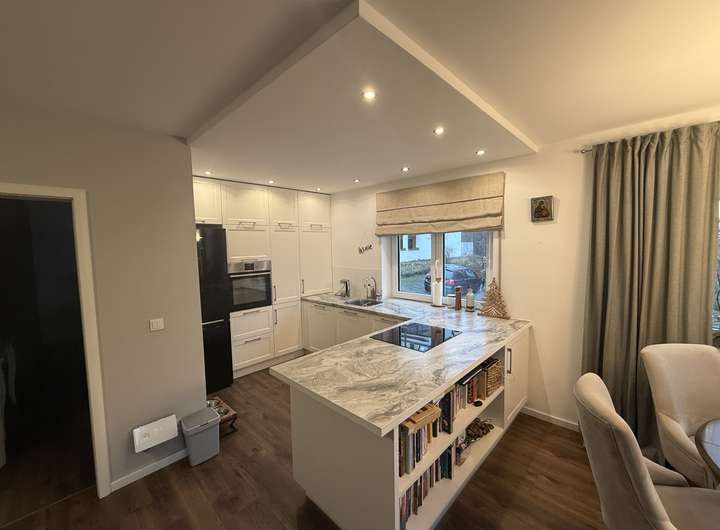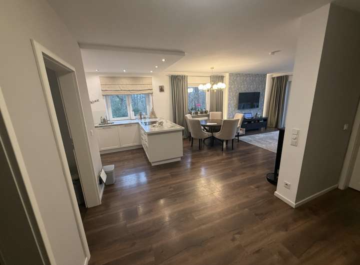 Der Eingangsbereich mit genug Platz für eine Garderobe geht direkt in den Wohnbereich über, wo Sie es sich gemütlich machen können oder mit Ihrer Familie beim Essen sitzen. Die offene, moderne Küche gibt Ihnen hierzu alle Möglichkeiten.