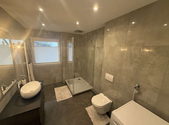 Im Bad wurde ein Waschmaschinenanschluss verlegt, eine Dusche eingebaut, die Ihnen ein besonders luxuriöses Gefühl gibt und auch ein edler Waschtisch hat Einzug gefunden.