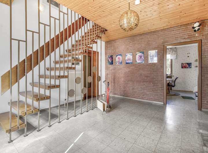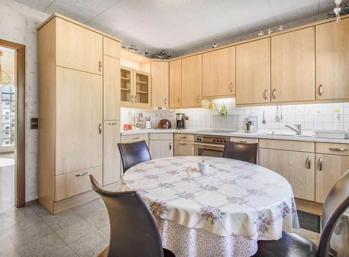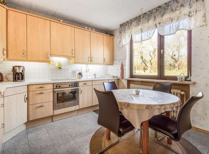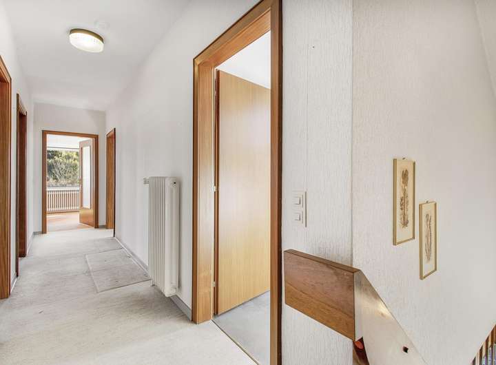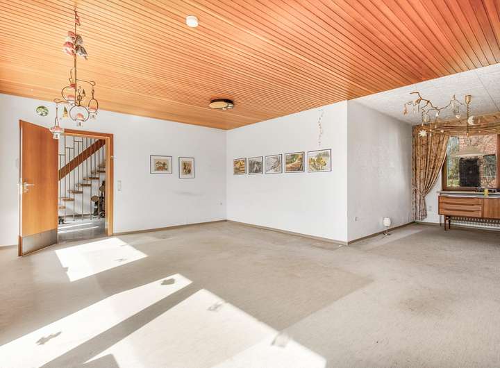 Das Anwesen besteht aus einem ehemaligen landwirtschaftlichen Betriebsgebäude aus ca. 1880 sowie einem Wohnhaus, das im Jahr 1970 errichtet wurde. Die Gesamtwohnfläche beträgt großzügige ca. 235 m² und überzeugt durch einen durchdachten, familienfreundlichen Grundriss. Bereits beim Betreten des Hauses werden Sie von einer großzügigen Diele empfangen, die zentral zu den Wohnbereichen führt. Das große Wohn- und Esszimmer sowie die angrenzende Küche bieten viel Platz für gemeinsame Stunden. Von der Diele aus gelangen Sie direkt in den angrenzenden Altbau. Über eine Treppe in der Diele erreichen Sie das ausgebaute Dachgeschoss. Hier erwarten Sie zwei gemütliche Kinderzimmer, ein Elternschlafzimmer mit Zugang zu einem Balkon sowie ein Tageslichtbad.