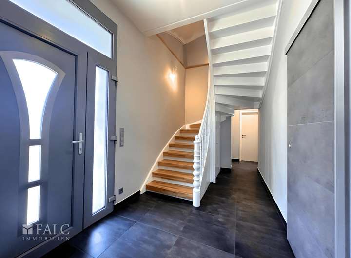 Diese ca. 143 m² große Doppelhaushälfte präsentiert sich nach umfassender Kernsanierung in neuwertigem Zustand und bietet modernen Wohnkomfort auf einem ca. 290 m² großen Grundstück. Das Haus verbindet zeitgemäße Ausstattung mit durchdachter Raumaufteilung und überzeugt durch hohe Decken, smarte Haustechnik und stilvolle Materialien – ideal für Paare, Familien oder Wohnen und Arbeiten unter einem Dach.