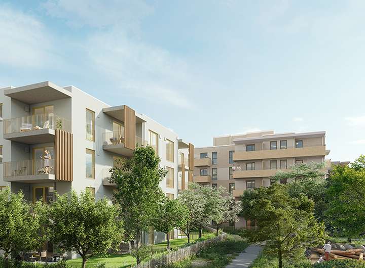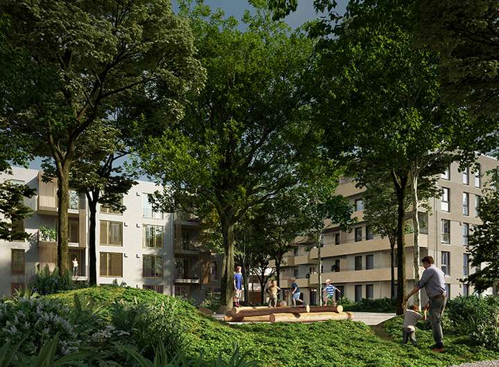 SILVA, der erste Bauabschnitt von OPUS.G, ist geprägt durch den Waldplatz, ein mit heimischen Bäumen und durch harmonische Freiflächen gekennzeichnetes Areal.