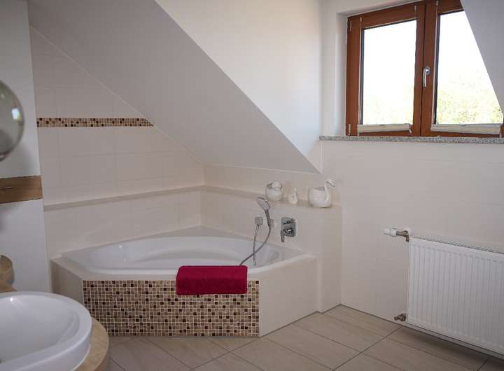 Das Familienbad wurde vor ein paar Jahren erneuert und bietet Platz für die ganze Familie.