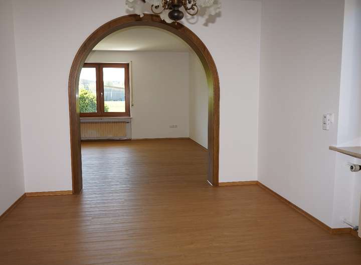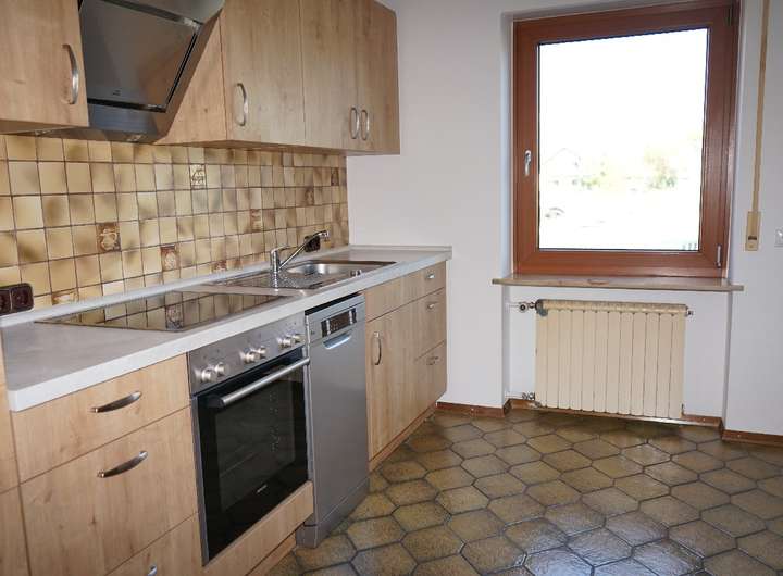 Herzstück des Hauses ist das großzügige Wohn-/Esszimmer mit Zugang auf den überdachten Freisitz und in den Garten. Die angrenzende Küche ist mit einer Einbauküchenzeile ausgestattet die mit vermietet ist.