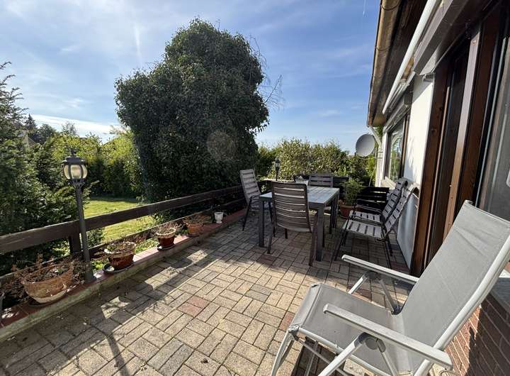 Die Südausrichtung der Terrasse mit einer großen Fensterfront wirkt lichtdurchflutend auf den Wohn- und Essbereich. Die Räume schaffen eine einladende Wohnatmosphäre – einfach zum Wohlfühlen. Eine Küche mit Ausgang auf die Terrasse, ein großes Bad mit Wanne und Dusche, ein Schlafzimmer und ein weiteres Zimmer – flexibel als Gästezimmer, Homeoffice oder Kinderzimmer nutzbar, komplettieren den Wohnbereich. Der Keller bietet Ihnen ein Gäste WC, Technikraum mit Heizung und Waschmaschinenanschluss, ein Hobby- / Gästezimmer mit optionalem Ruhebereich mit Kamin und direktem Zugang zur Sauna. Ein Carport und Stellplatzmöglichkeiten für ein Boot oder ein Wohnmobil sind vorhanden.