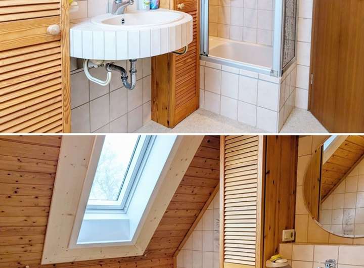 Neben zwei Schlafzimmern im Erdgeschoss hält das Obergeschoss heute ein großzügiges (Schlaf-)zimmer, ein Duschbad sowie eine weitere Ausbaureserve für Sie bereit.