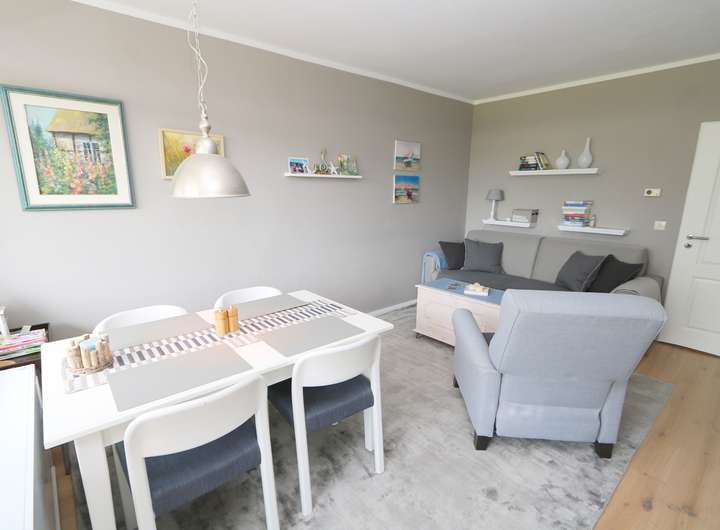 Diese stilvolle Wohnung eignet sich perfekt als Zweitwohnsitz, Ferienimmobilie oder kompakter Rückzugsort mit Meerblick. Einfach einziehen und wohlfühlen!