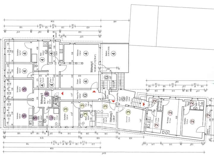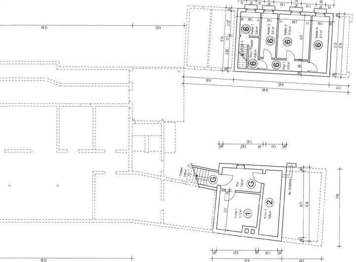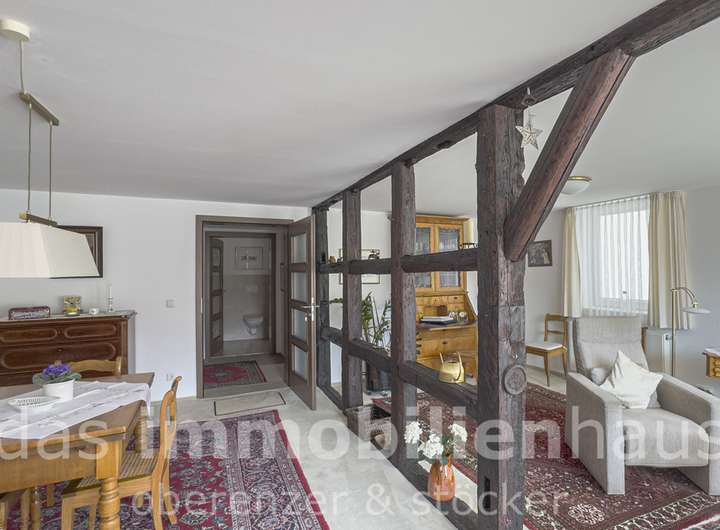 Das Fachwerkhaus aus dem 18. Jahrhundert wurde ca. 2011 vollständig renoviert und in großen Bereichen - insbesondere das erste OG - kernsaniert. Dadurch ist insbesondere die größte Wohneinheit, ca. 168 m² groß, derzeit bewusst leerstehend, auf einem aktuellem Ausstattungsstand - u.a. mit modernisierten Bädern/WC und einer großen Dachterrasse zum Garten. Die Wohnung lässt sich ohne großen Aufwand auch in mehrere kleinere Einheiten teilen. Ein entsprechender Umnutzungsantrag für eine Teilung in 2 Einheiten ist bereits genehmigt worden (vgl. Grundrisse).