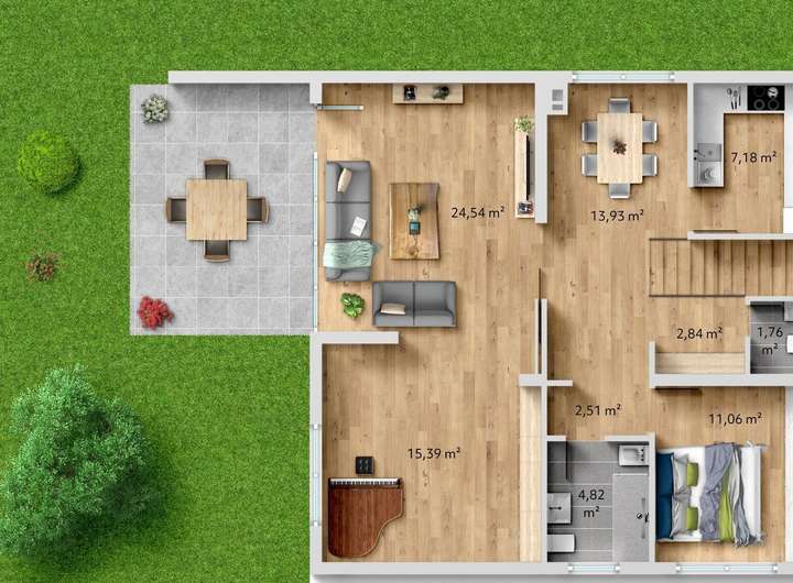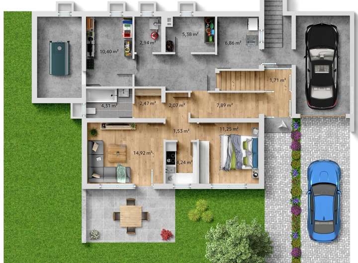 - auf einer oder zwei Ebenen bewohnbar