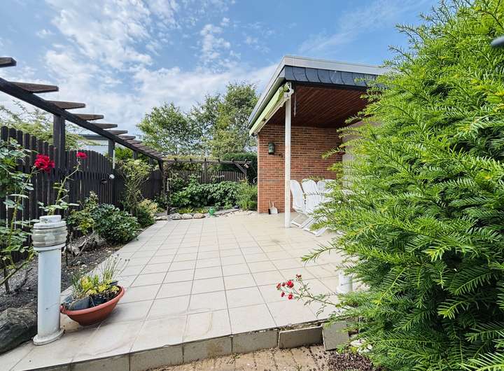 Von der Terrasse der unteren Etage/Einliegerwohnung aus gelangt man ebenfalls in den liebevoll angelegten Gartenbereich in Süd-Ausrichtung.
