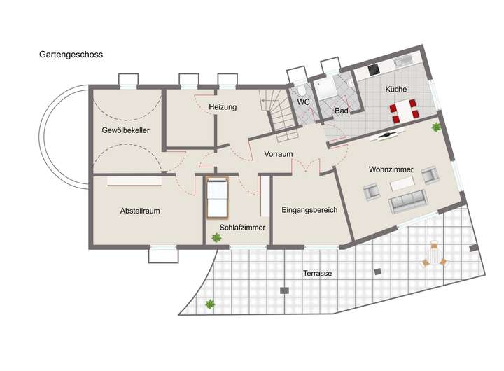 Im Garten können Sie träumen oder Ihre Träume verwirklichen: Naturbelassene Hänge, schattige Ruheplätze und uneinsehbare sonnige Liegewiesen locken ins Freie. Weiterer Platz und Raum für Ihre Gestaltungswünsche ist im Überfluss vorhanden.