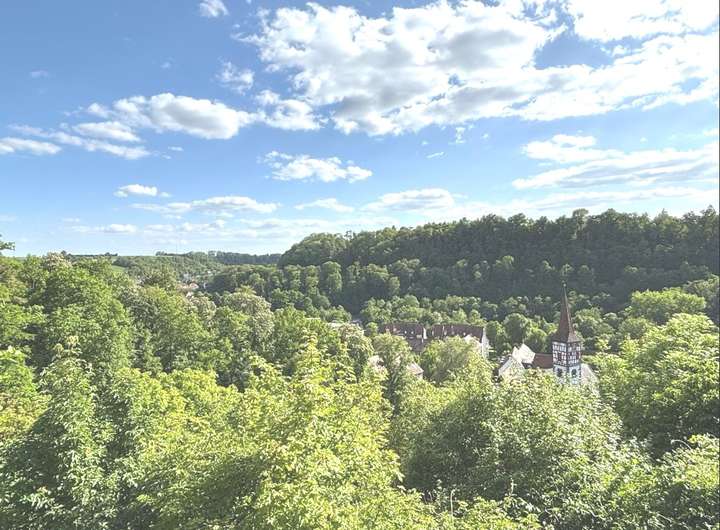 Dieses außergewöhnliche Haus befindet sich in herausragender Lage im Landschaftsschutzgebiet. Hier "residieren" Sie hoch über Schwäbisch Hall mit Panoramablick auf einem uneinsehbarem Grundstück. Die unverbaubare Lage, direkt an den Wald angrenzend, bietet Ihnen eine wunderschöne Natur und erholsame Ruhe. Trotzdem können Sie die lebendige, historische Innenstadt von Schwäbisch Hall bequem zu Fuß erreichen.